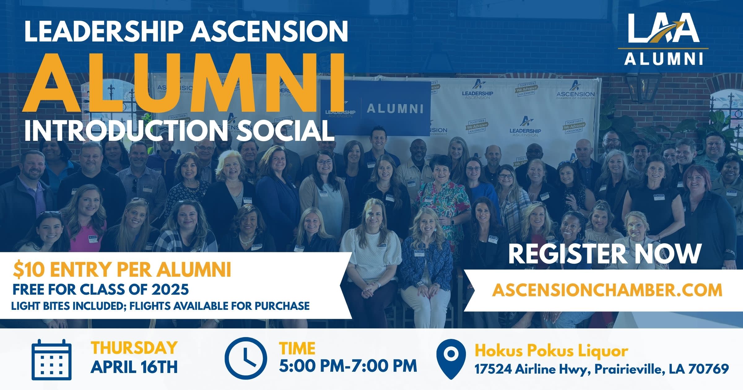 Leadership Ascension Alumni, join us for a spring social to reconnect! Registration is $10 per Alum, and free for the Class of 2025 graduates! **Must pay by credit card** Subscribe To Leadership Alumni Emails HERE!