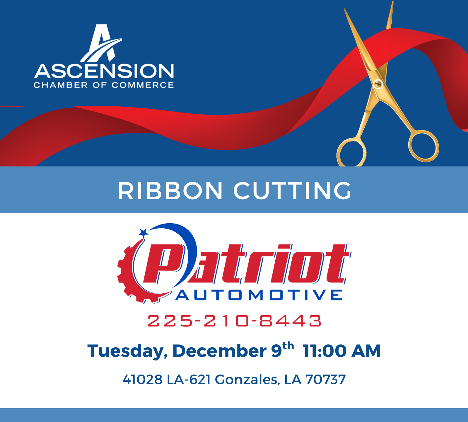Join us as we celebrate the opening of Patriot Automotive. Patriot Automotive is a full-service, family-owned repair shop known for honest, straightforward service and high quality workmanship on all makes and models. Their team prioritizes transparency, convenience, and a smooth, stress-free experience from drop-off to pickup.