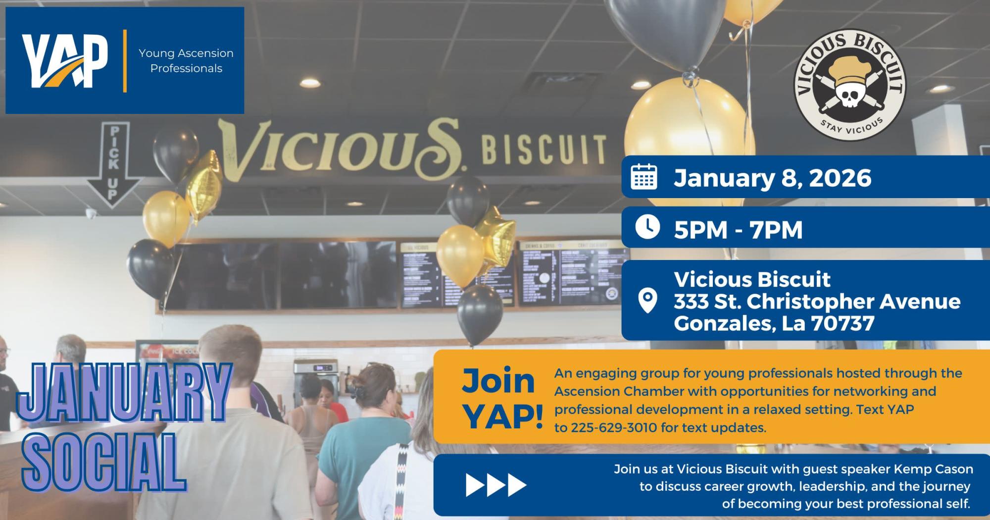 Join the Young Ascension Professionals for a special conversation with guest speaker Kemp Cason at Vicious Biscuit. Kemp will share insights on career growth, leadership, and the journey of becoming your best professional self.